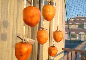 青々としていた柿の実が、微かに黄色味を帯びてきました。