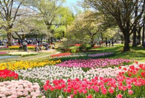 様々な春の花が開き始めたところで、昭和記念公園